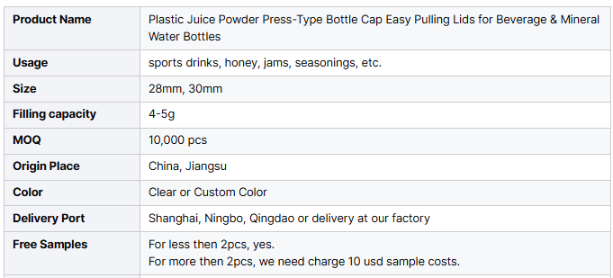 28mm 30mm Plastic Juice Powder Press-Type Bottle Cap Easy Pulling Lids for Beverage & Mineral Water Bottles